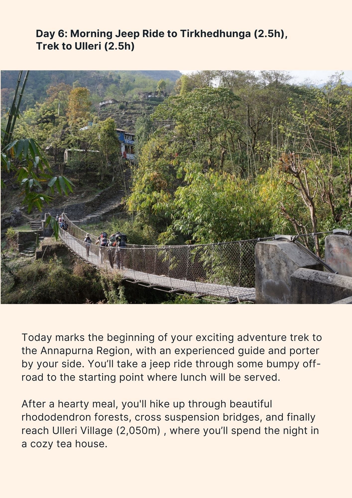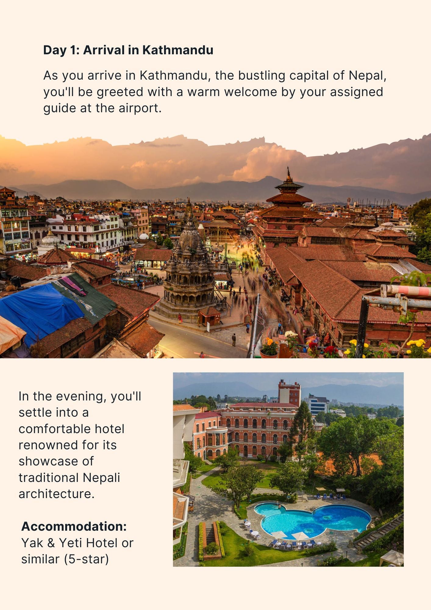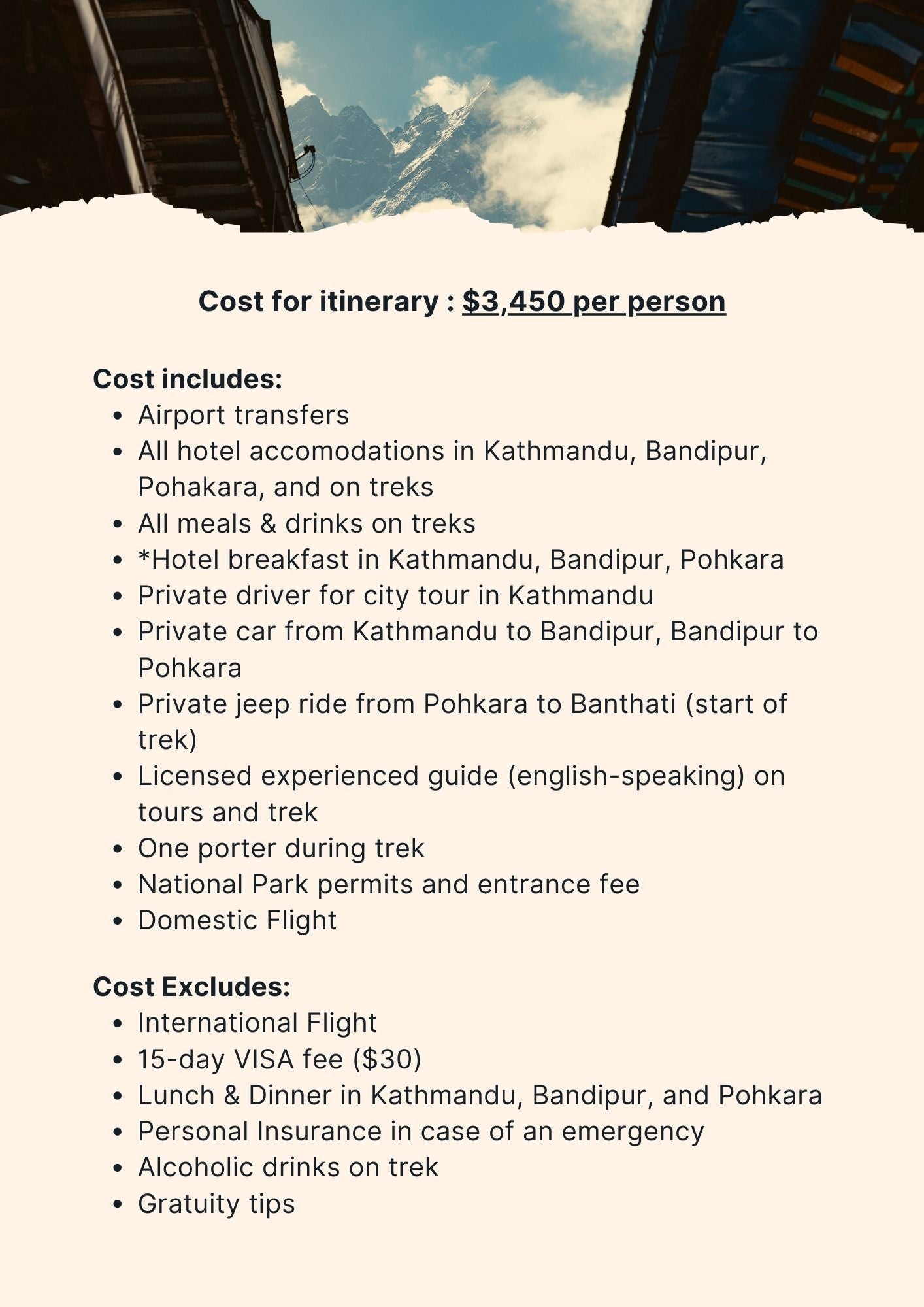 Your journey will be led by a seasoned local guide for city explorations, accompanied by a porter during the trekking segments.